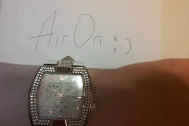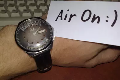 Вы можете выиграть этот часофон, если проживаете в Украине и примете участие в нашем конкурсе. Условия, как обычно, очень просты — нужно загрузить (используя кнопку ниже) фотографию своих наручных часов с нарисованным от руки текстом «AirOn» в кадре. Например, так, как это показано на фото ниже. Конкурс продлится с 8 по 21 октября (включительно), победитель будет выбран в результате честной жеребьевки. В конкурсе, традиционно, не могут принимать участие сотрудники компании «Магнет» и их родственники. От одного участника принимается только одно фото.