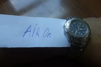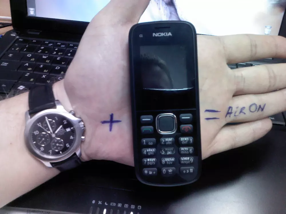 Вы можете выиграть этот часофон, если проживаете в Украине и примете участие в нашем конкурсе. Условия, как обычно, очень просты — нужно загрузить (используя кнопку ниже) фотографию своих наручных часов с нарисованным от руки текстом «AirOn» в кадре. Например, так, как это показано на фото ниже. Конкурс продлится с 8 по 21 октября (включительно), победитель будет выбран в результате честной жеребьевки. В конкурсе, традиционно, не могут принимать участие сотрудники компании «Магнет» и их родственники. От одного участника принимается только одно фото.