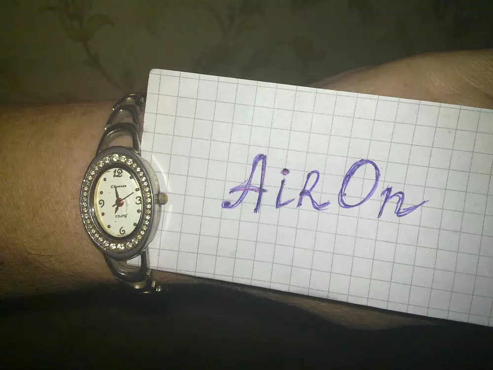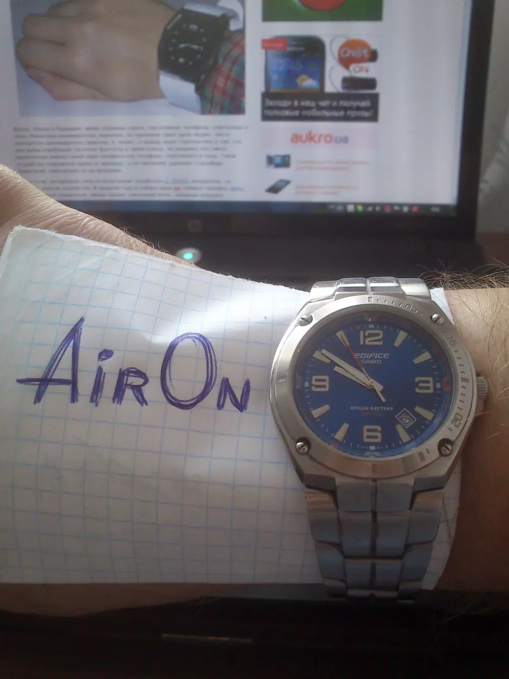 Вы можете выиграть этот часофон, если проживаете в Украине и примете участие в нашем конкурсе. Условия, как обычно, очень просты — нужно загрузить (используя кнопку ниже) фотографию своих наручных часов с нарисованным от руки текстом «AirOn» в кадре. Например, так, как это показано на фото ниже. Конкурс продлится с 8 по 21 октября (включительно), победитель будет выбран в результате честной жеребьевки. В конкурсе, традиционно, не могут принимать участие сотрудники компании «Магнет» и их родственники. От одного участника принимается только одно фото.