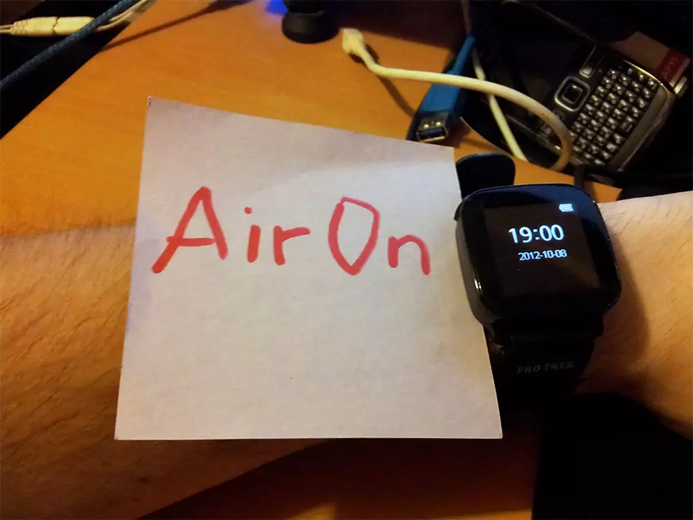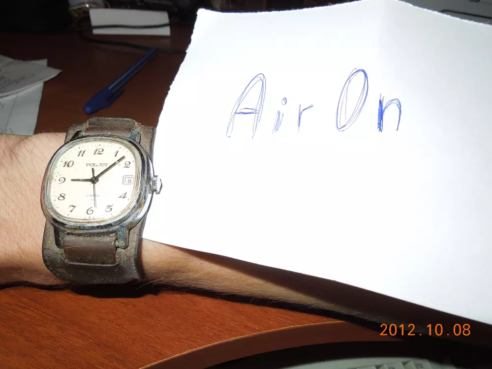 Вы можете выиграть этот часофон, если проживаете в Украине и примете участие в нашем конкурсе. Условия, как обычно, очень просты — нужно загрузить (используя кнопку ниже) фотографию своих наручных часов с нарисованным от руки текстом «AirOn» в кадре. Например, так, как это показано на фото ниже. Конкурс продлится с 8 по 21 октября (включительно), победитель будет выбран в результате честной жеребьевки. В конкурсе, традиционно, не могут принимать участие сотрудники компании «Магнет» и их родственники. От одного участника принимается только одно фото.