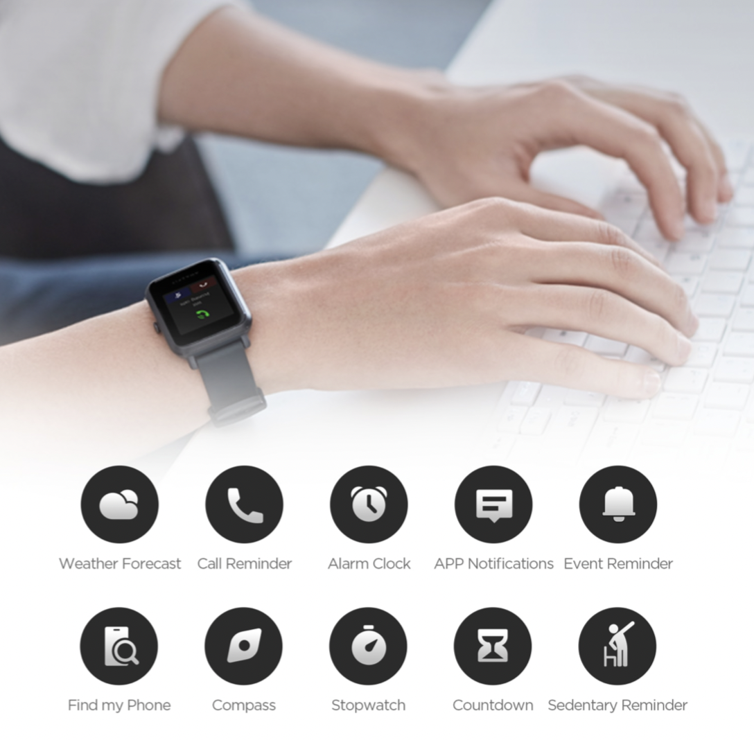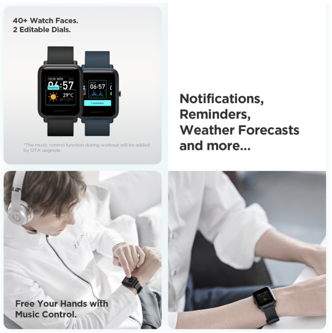 Модель вышла в 2020 году, но до сих пор актуальна. Гаджет имеет пластиковый корпус с защитой от воды (5АТМ), силиконовый ремешок, а также квадратный TFT-дисплей с диагональю 1.28 дюймов и разрешением 176×176 пикселей. Дисплей прикрыт защитным стеклом Corning Gorilla Glass 3. Часы оснащены датчиком BioTracker PPG для отслеживания пульса и разными функциями для мониторинга физической активности. Поставляется гаджет с модулем Bluetooth 5.0 и аккумулятором на 200 мАч. По словам производителя, этого хватит на 30 дней работы устройства.