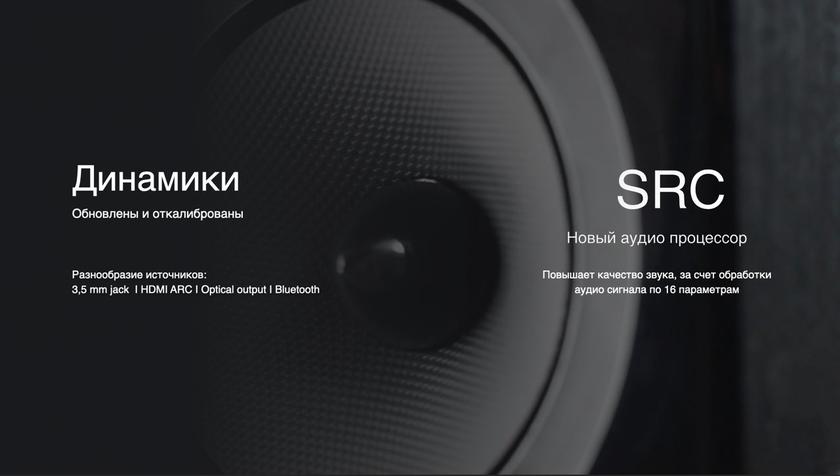 Отдельное внимание (напомню, что речь идет не о самых дорогих телевизорах на рынке) уделено звучанию. Полностью обновили все динамики (изменили корпус и магниты), откалибровав их по 16 параметрам сначала по отдельности, потом уже внутри телевизора. Теперь обещают, что они не будут греметь и дребезжать даже на максимальной громкости. Новый аудиопроцессор выравнивает аудиосигнал вне зависимости от источника, выполняя пересемплирование. Есть автоматическое выравнивание уровня громкости, которое возникает при переключении каналов или рекламных паузах. По словам Аркадия Зубрицкого, у обновленных динамиков слегка пострадали «низы» и глубина звучания, зато в целом звук стал чистым. Есть выходы для всех типов аудио: 3.5-мм разъем для наушников, есть поддержка Bluetooth и HDMI ARC (передача звука по реверсивному каналу).