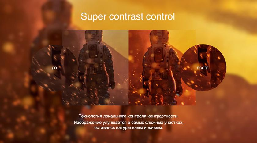 Технология Super contrast control объединяет в себе адаптивный контроль контраста, изменяющий контраст всего изображения в автоматическом режиме, и локальное управление контрастности в необходимом фрагменте.