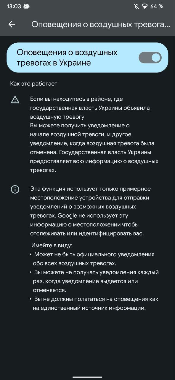 Tragically, millions of people in Ukraine now rely on air strike alerts to try get to safety. Working with the Ukrainian government, we're rolling out a rapid Air Raid Alerts system for all Android phones in Ukraine. https://t.co/tCzs0eI9iW 1/3