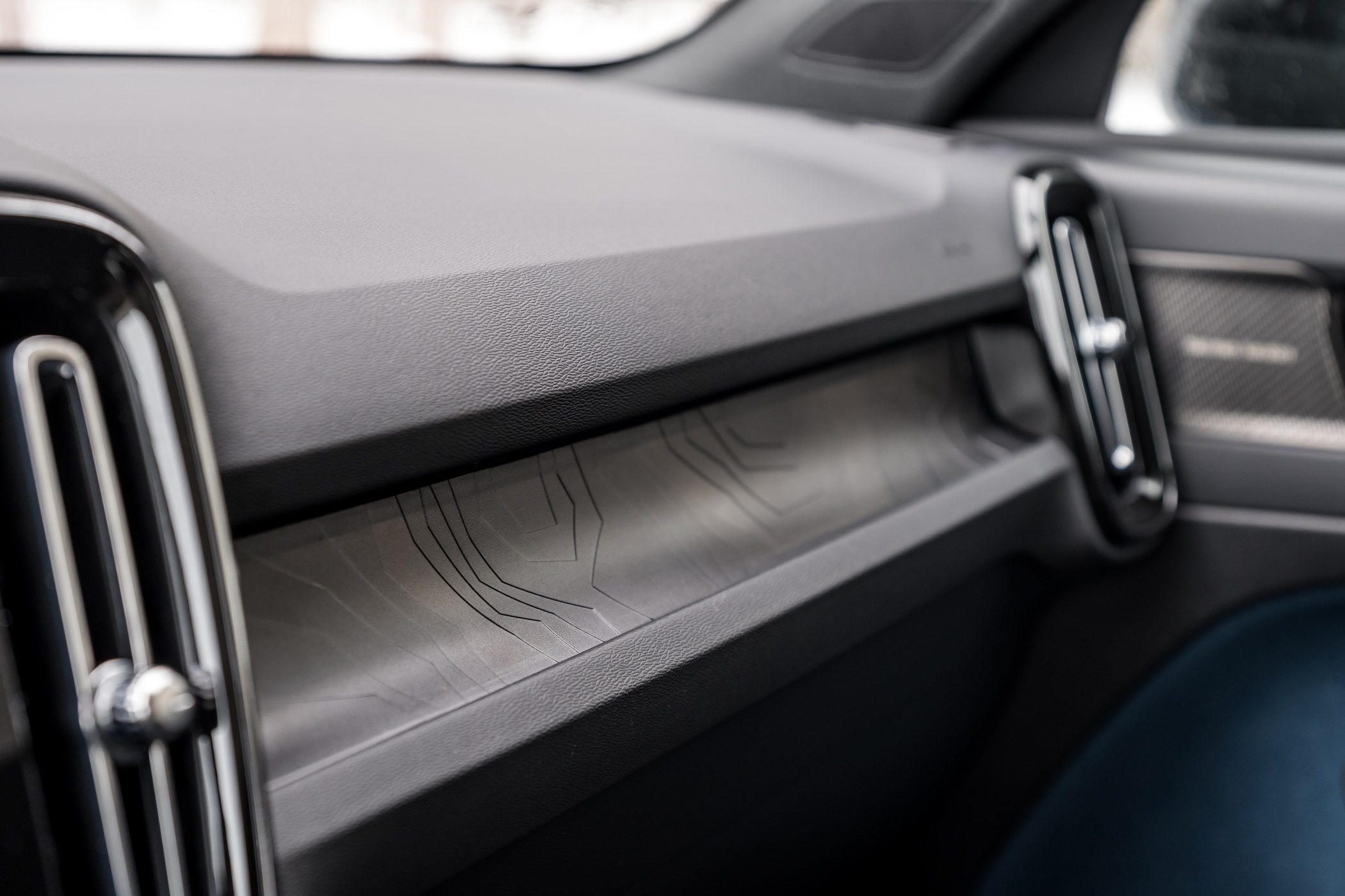 Дизайн окремих елементів інтер’єру виконаний у три шари – на це Volvo надихнули топографічні мапи природних місцин. Відчуття тривимірного простору у салоні надають шари: нижній світловідбивний, середній світлопропускний акриловий та верхній дрібнозернистий матовий із полікарбонату. Усе оздоблення має приховану світлодіодну підсвітку. Такі елементи встановлені на панелі приладів та картах передніх дверей, створюючи враження тривимірного простору. До того ж, декоративні панелі мерехтять під час відчинення дверей – це ексклюзивний вітальний ефект в електричному C40.