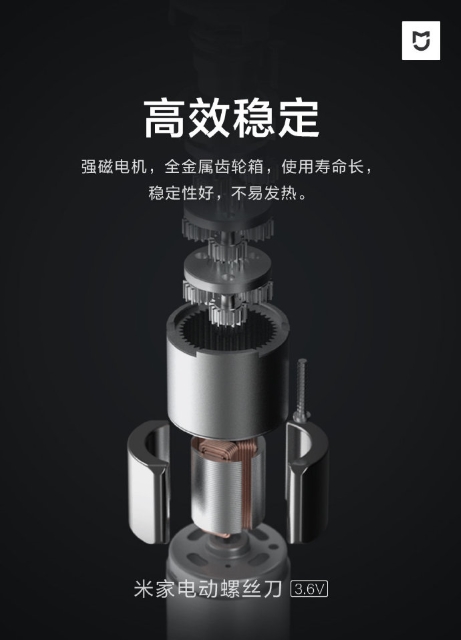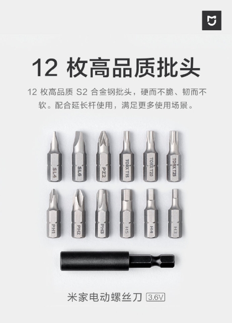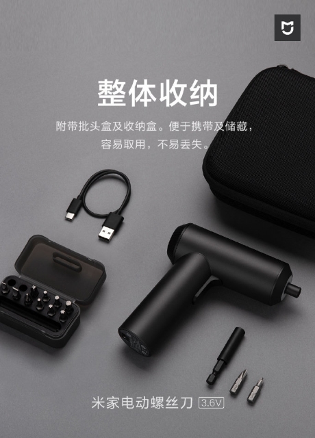 Новинка получили компактные габариты и минималистичный дизайн, который выиграл награду 2019 German iF Design. Новинку оснастили ударопрочным пластиковым корпусом, а также специальным моторчиком с крутящим моментом 5 Н·м и LED-подсветкой. MiJia Electric Screwdriver работает на аккумуляторе с ёмкостью в 2000 мАч. Его, по заявлению компании, хватит для того чтобы закрутить 180 винтов на полной скорости. Заражается аппарат через порт USB-C. В комплекте с устройством идут 12 видов наконечников S2 с твердостью до HRC60.