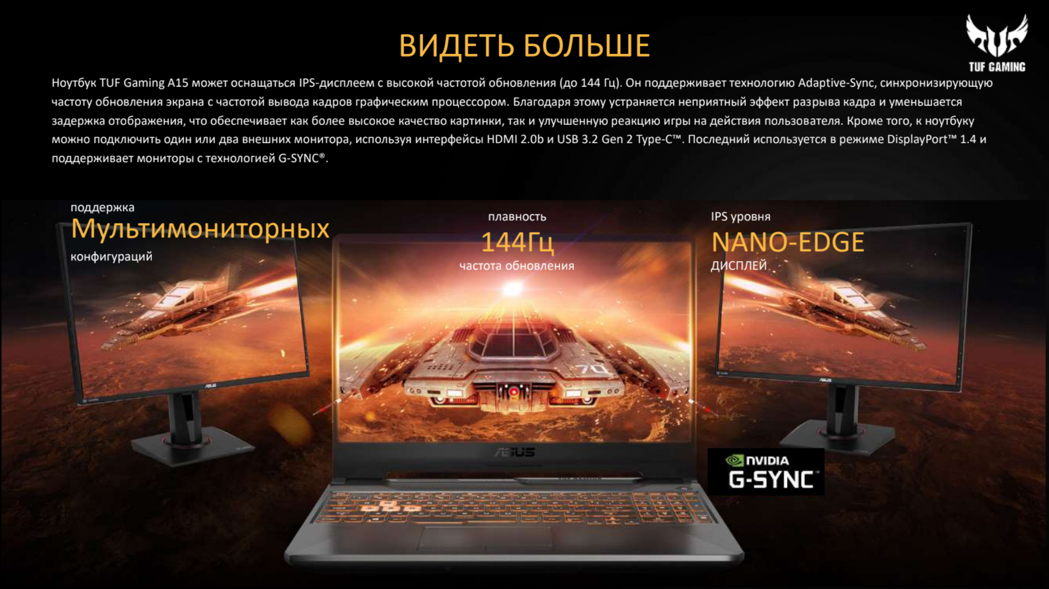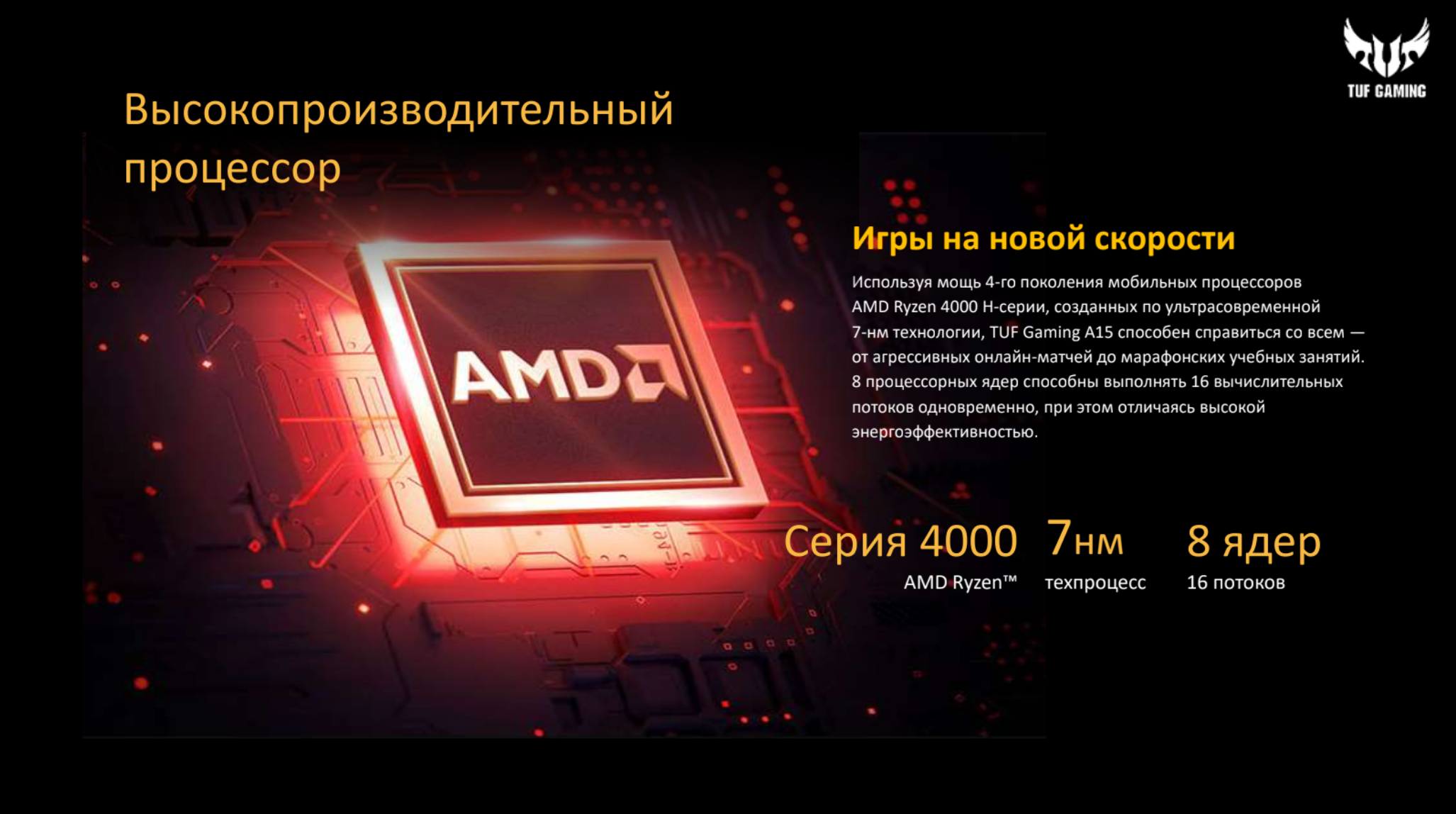 Эта линейка ноутбуков получила защитные корпуса (MIL-STD-810H) с разными материалами (пластик или металл) и дисплеи с диагоналями на 15 и 17 дюймов. Экраны имеют IPS-матрицу, разрешение FHD и частоту обновления картинки до 144 Гц. Работают новинки под управлением процессора AMD Ryzen 4000 H-серии в паре с видеокартой NVIDIA GeForce RTXTM 2060 и двухканальной оперативной памятью DDR4-3200 с объёмом до 32 ГБ. Она отличается повышенной производительностью и энергоэффективностью. Ещё в новинках есть мощная система охлаждения, удобный доступ к компонентам, аккумулятор с мощностью до 90 Вт·ч и клавиатура, как в десктопах. Новинки уже поступили в продажу. Модель ASUS Gaming A15 стартует с отметки 33 599 грн, а модель A17 с ценником от 25 099 грн.