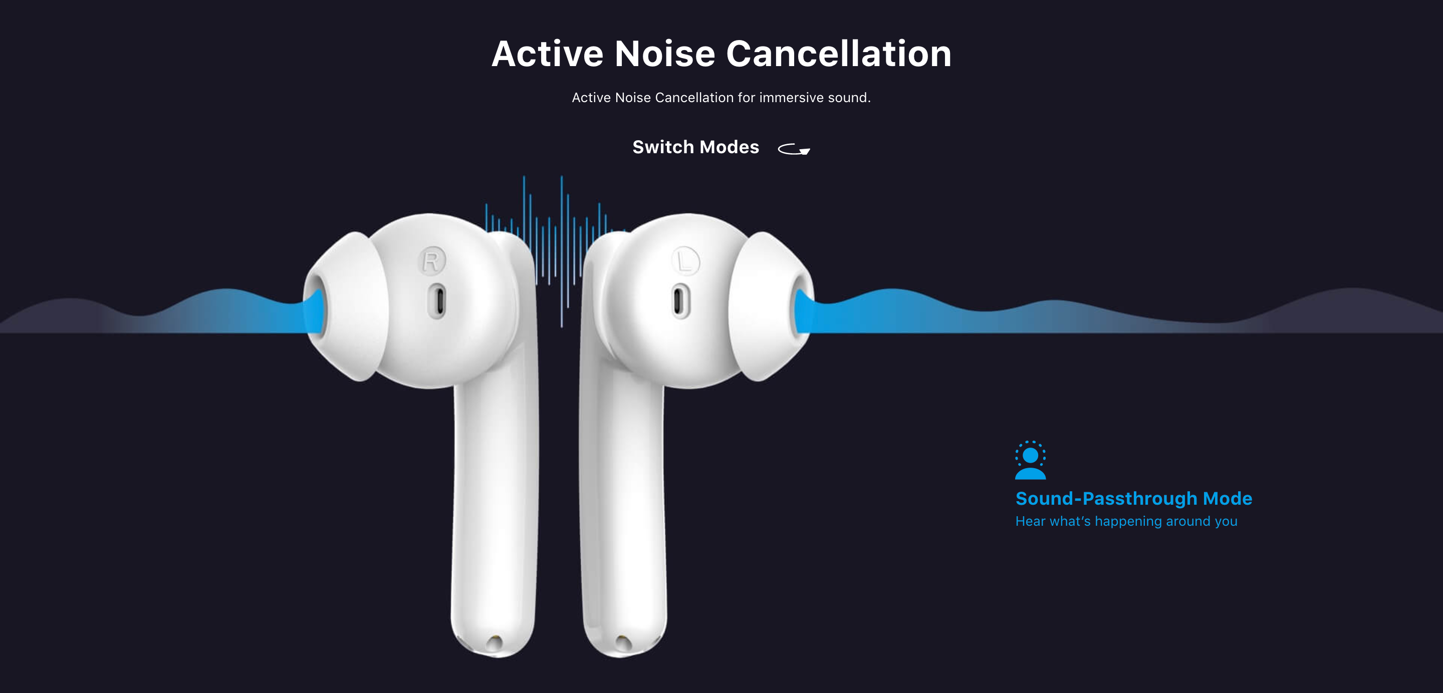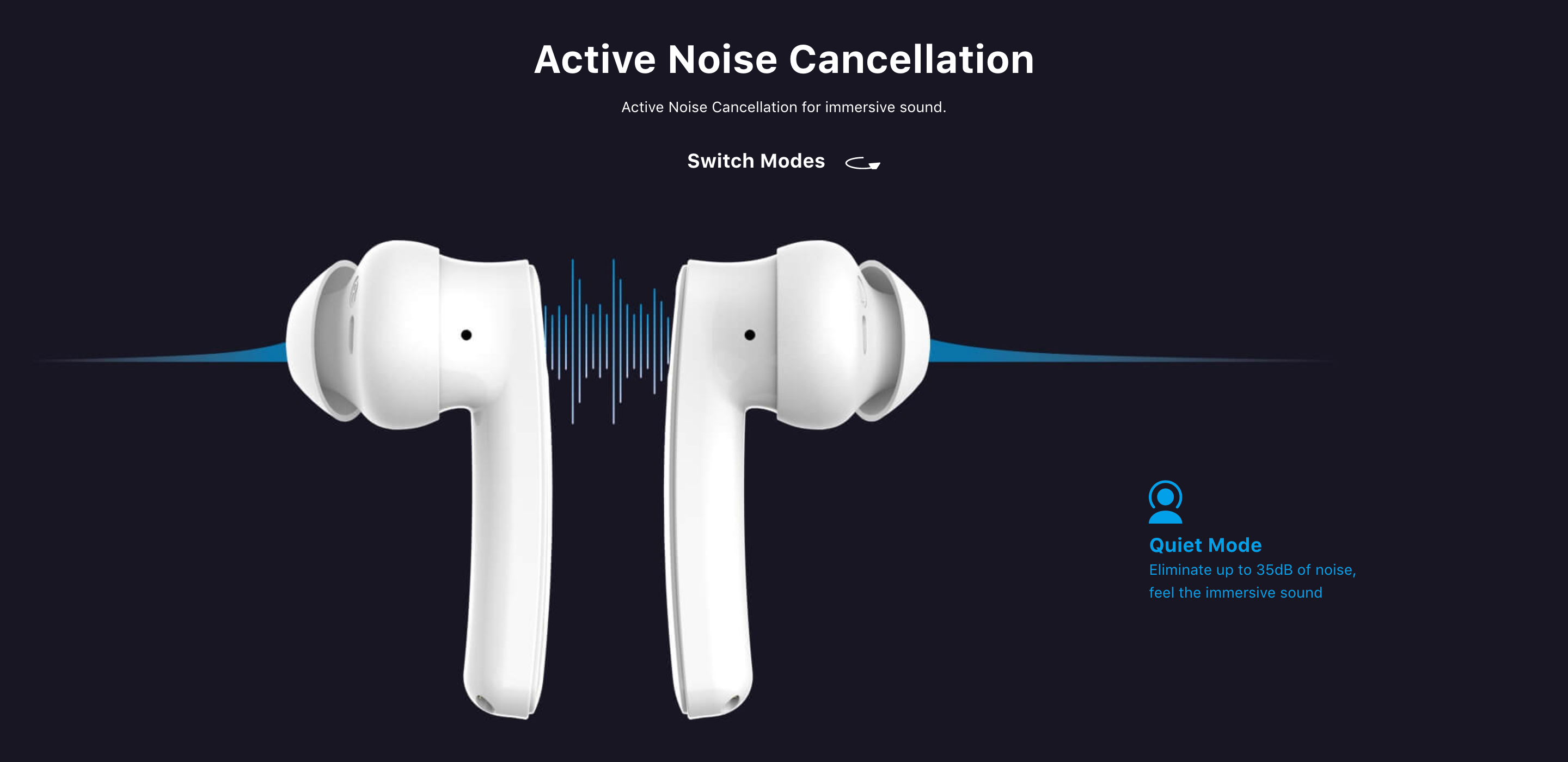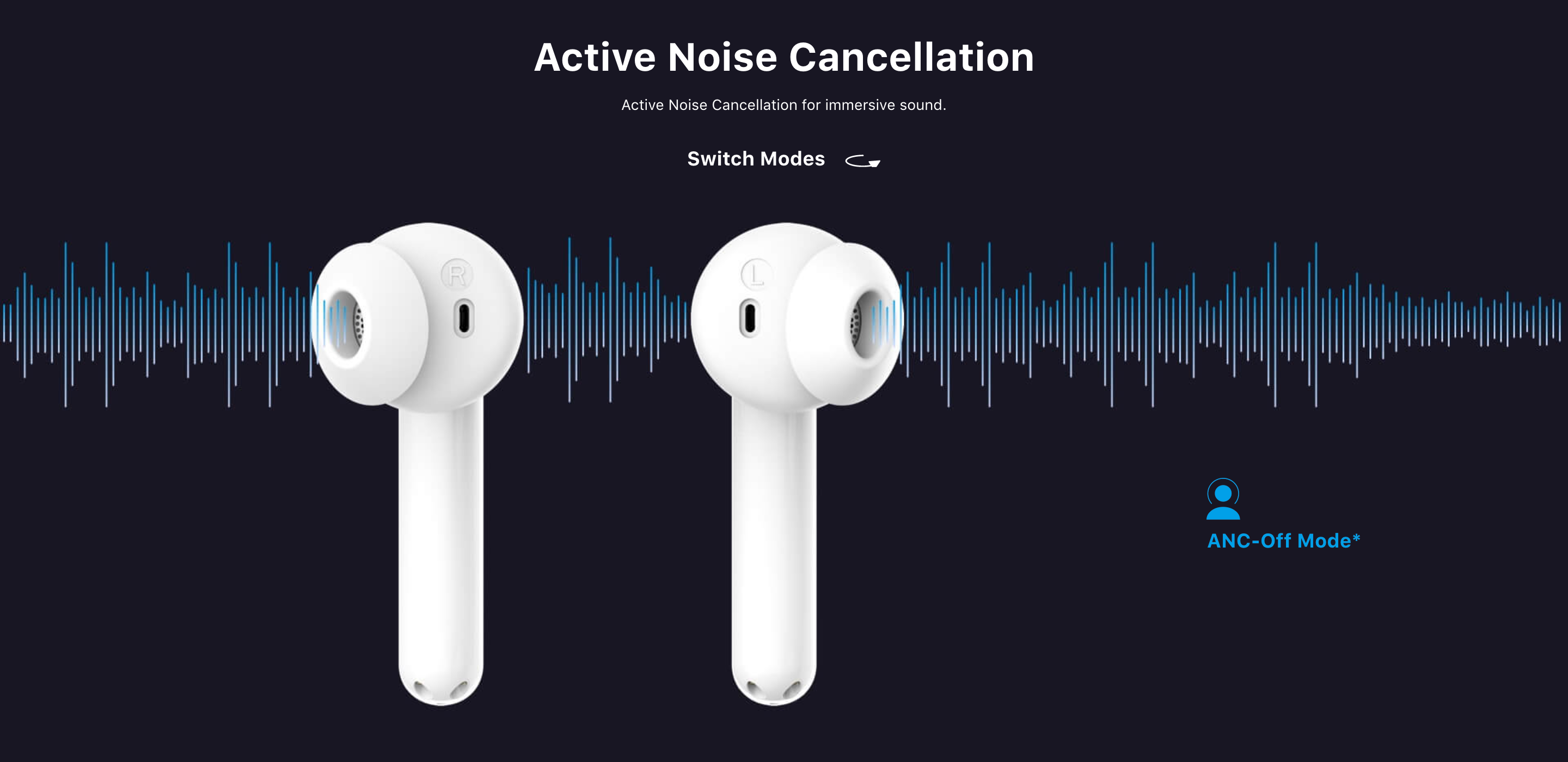 Модель получила вакуумную конструкцию и может похвастаться системой активного шумоподавления звука. Он имеет три режима: Quiet Mode, Sound-Passthrough Mode и ANC-Off. Первый полностью поглощает посторонние шумы, второй — пропускает некоторые звуки, а третий — полностью отключает ANC.
