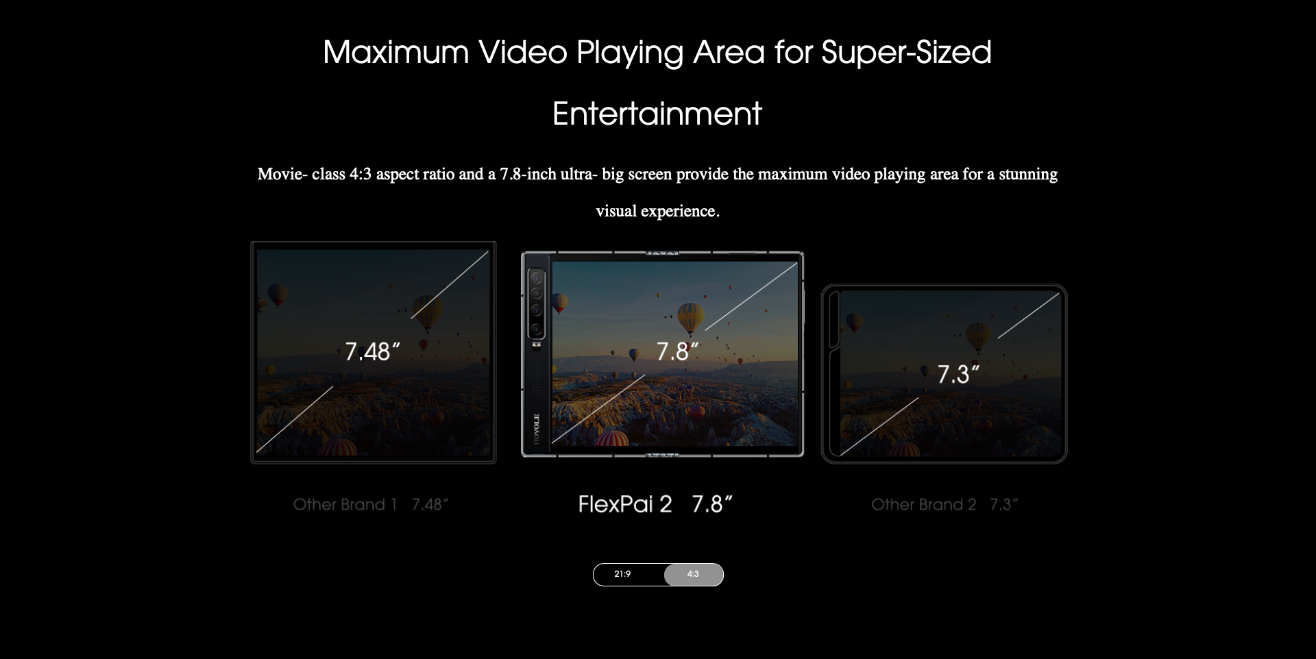 Royole FlexPai 2 получил множество улучшений, но самое главное — обновлённая OLED-панель Cicada Wing 3-го поколения с новым шарниром Stepless 3S Hinge, который поворачивается на 180 градусов. Благодаря ему, в сложенном состоянии новинка теперь не имеет зазора. Также, по словам компании, смартфон на 40% стал тоньше своего предшественника. Ещё аппарат оснастили 7.8-дюймовым экраном с разрешением 1920×1440 пикселей и соотношением сторон 4:3. Если его сложить, то получится два дисплея на 5.5″ (1440×900p) и 5.4″ (1440×810p).
