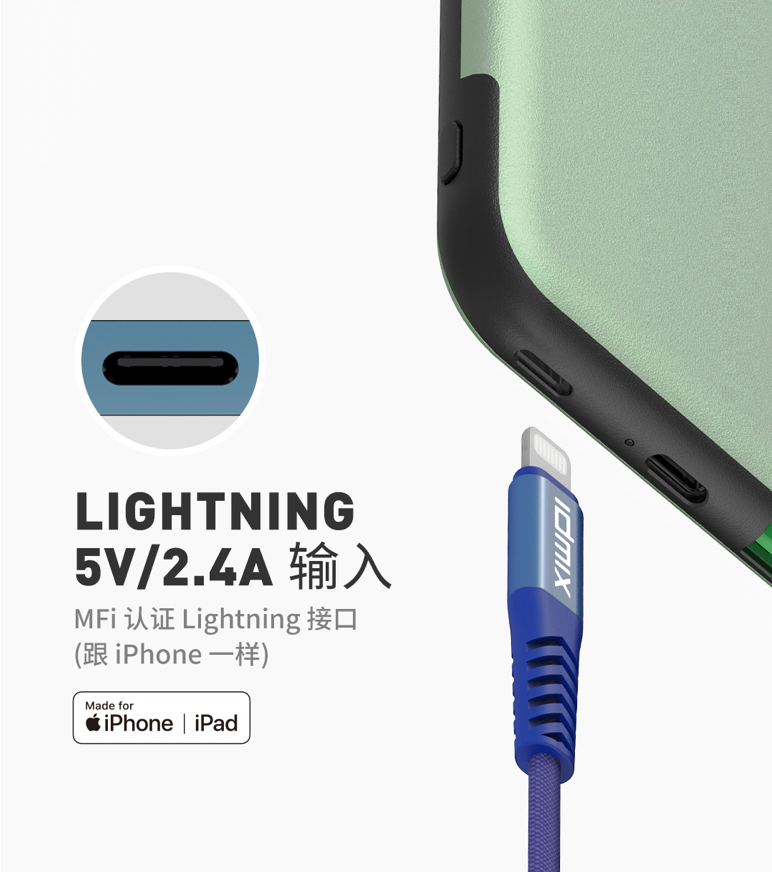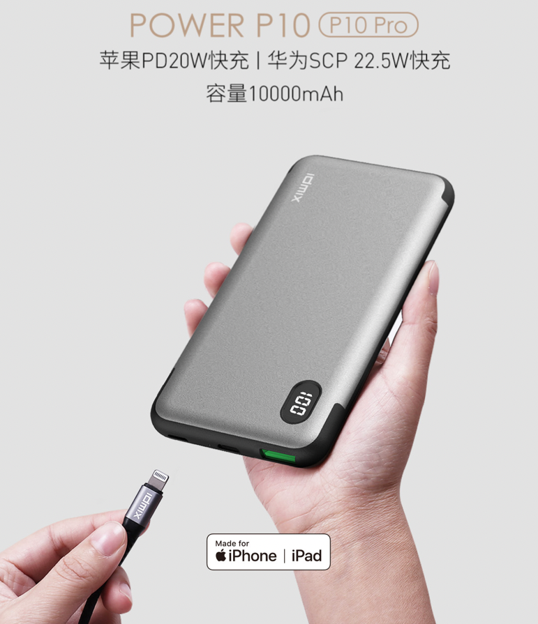 Модель называется IDMIX P10 Pro. Новинка получила пластиковый корпус с толщиной 12.8 мм, небольшой дисплей, который отображает заряд, объём в 10 000 мАч, а также сертифицированный порт Lightning. Он поддерживает быструю зарядку Apple PD c мощностью в 20 Вт. Благодаря этому, аккумулятор может зарядить iPhone 12 до 50% всего за 30 минут.
