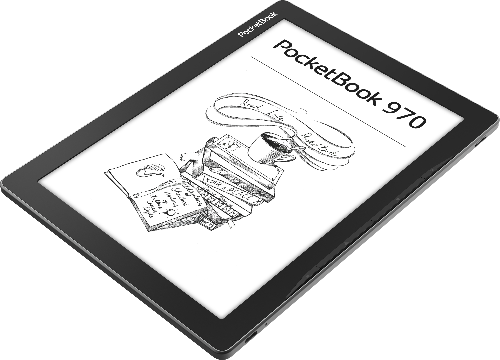 Модель называется PocketBook 970. Она имеет металлическую рамку и сенсорный 9.7-дюймовый дисплей c матрицей E-ink и разрешением 1200×825 пикселей. Он подойдёт для чтения учебников, журналов или комиксов. Благодаря технологии SMARTlight, пользователи смогут настраивать яркость панели и её цветовую температуру. Устройство оснащено кнопками управления, которые расположены на боковой грани. С помощью них можно перелистывать страницы.