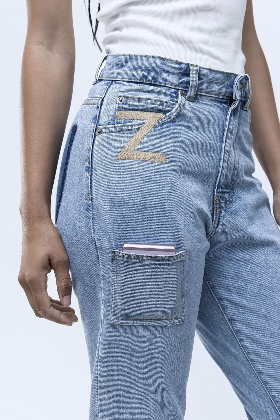 Джинсы имеют светлый окрас и две золотистые буквы Z. Кстати, они в новинке не просто так. Буквы закрывают два привычных кармана. Компания считает, что они тут не нужны, ведь такие карманы «занимают много места» и «выглядят не стильно».