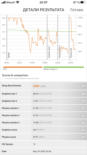 Процессор A13, с которым я впервые столкнулся в iPhone 11 Pro, тогда больше впечатлил своим влиянием на автономность. Может, и тут он себя покажет? Увы, нет. При одинаковой ёмкости аккумулятора (скромные 1821 мАч) «восьмерка» и SE 2 показывают примерно одинаковые результаты: «12 часов интернет-использования». И это несмотря на менее прожорливый процессор. Как-то обидно. С другой стороны, смартфоном можно нормально пользоваться целый день, а если пользоваться мало, то хватит и на второй. Но при активной работе нетрудно посадить аккумулятор и к обеду, особенно если в такую работу включаться часов с шести утра. В любом случае новая «SE-шка» продержится дольше вашей старой «восьмёрки» с уже уставшей батареей. И окажется вполне на уровне среднестатистического конкурента на android со вдвое большей емкостью батареи. Кстати, даже медленная комплектная 5-ваттная зарядка даёт полностью севшему аппарату 28% заряда за 30 минут, 81% за час и 100% чуть менее чем за два часа. Так что энергоэффективность есть, просто прогресса особого не заметно.
