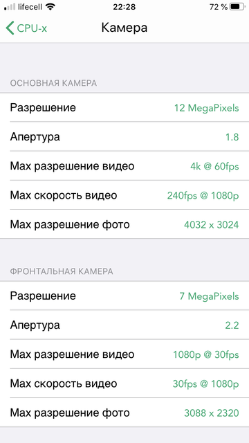 | Камера | Основная одинарная, 12 МП, f/1.8, светодиодная вспышка; фронтальная: 7 МП, f/2.2 |