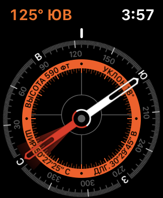 Apple Watch 5 получили встроенный компас, научились определять высоту над уровнем моря и уровень шума. Теперь возле тренировок, связанных с перемещением в пространстве, в приложении есть информация о максимальной и минимальной высоте над уровнем море, а также маршрут на карте с цветовой маркировкой того, насколько активно вы двигались.