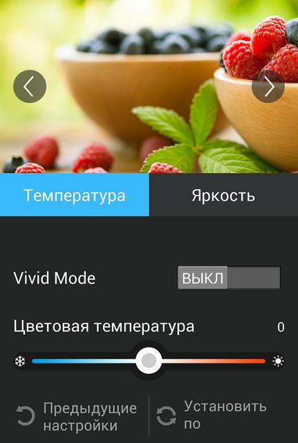 По умолчанию цветовая гамма экрана FonePad Note 6 традиционно для экрана смартфона холодновата. Но у него есть полезная и подробная утилита для настройки цветовой температуры Splendid. Судя по всему, после установки ПО можно осуществлять и более тонкую настройку цвета.