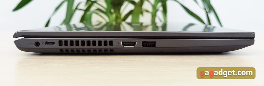 На левом торце расположились отверстия системы охлаждения, порт для подключения блока питания, USB Type-C 3.1 Gen 1, полноразмерный HDMI и USB Type-A 3.1 Gen 1.