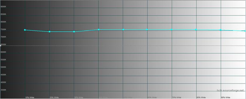 Замеры с помощью колориметра показали, что максимальная яркость достигает 331.737 кд/м2. Яркость черного поля — 0.349 кд/м2, а контрастность — 951:1. Калибровка очень неплоха: цветовая погрешность ΔE колеблется от 0 до 8, экран немного уходит в прохладные оттенки, цветовая температура — около 7500K. Измерения проводились в режиме Vivid: