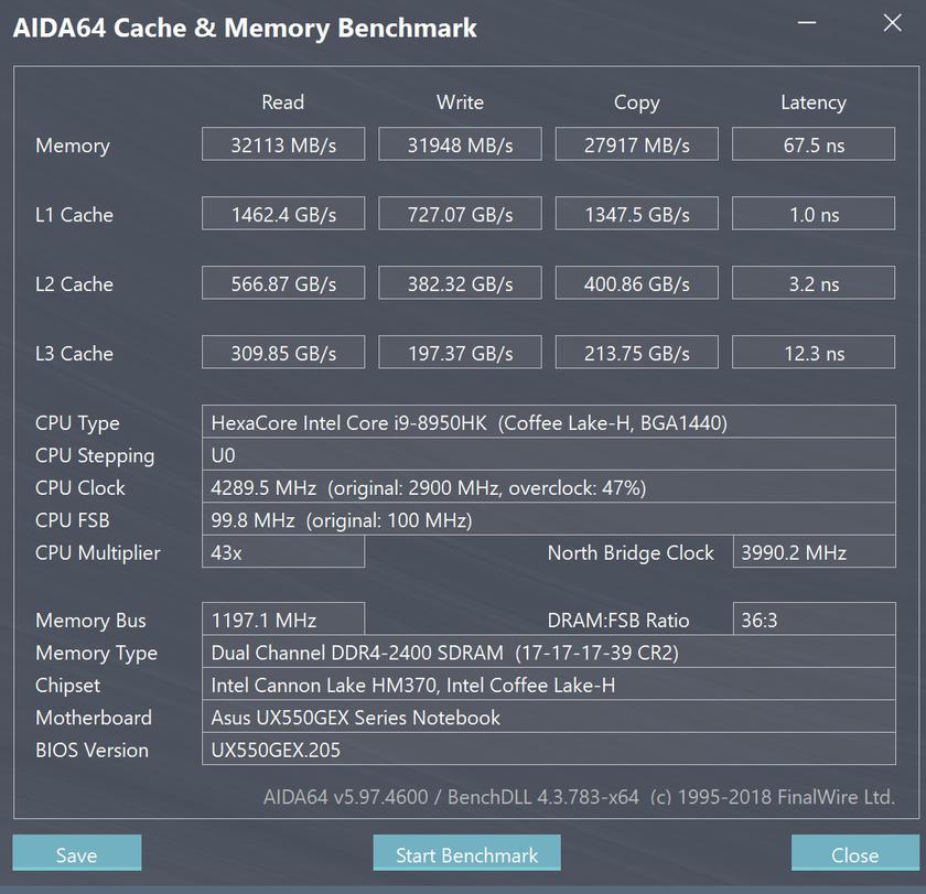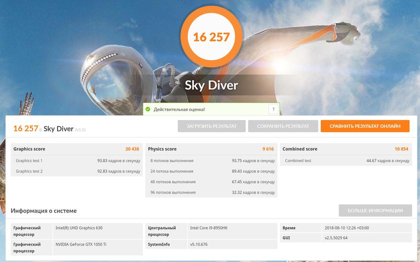 | Процессор | Intel Core i9-8950HK, 6 ядер, 12 потоков, 2.9-4.8 ГГц (Coffee Lake, 14 нм) |