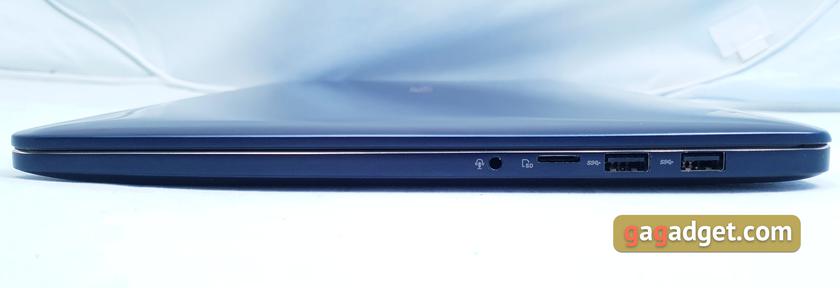 Справа — комбинированный аудиоразъём 3.5 мм, два полноразмерных USB 3.1 Gen 1 и слот для карт памяти MicroSD. Ноутбук позиционируется как решение для фотографии и видео, и вполне возможно, что ряд пользователей с парком SD-карт такое решение не устроит, но это не смертельно:
