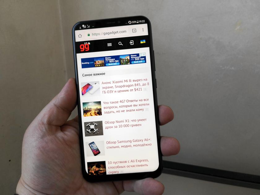 Эта модель была представлена в конце февраля 2018 года на выставке MWC. Смартфон интересен соотношением дизайна и технических возможностей. Да, дизайн его вторичен по отношению к iPhone X (вертикальное размещение двойной камеры и дополнительное пространство экрана (в виде выреза) в верхней части). Алюминиевый корпус и стеклянная задняя панель тоже придают ему дополнительный лоск (хотя и несут дополнительную угрозу в виде треснувшего стекла при падении). Это один из первых смартфонов с процессором Snapdragon 636 на рынке, созданном для смартфонов среднего класса (такой же установлен, например, в старшей версии Xiaomi Note 5 с 6 ГБ оперативной памяти). Ну, и главное преимущество этого смартфона для покупателя — это его камера. Нет, конечно же, он не снимает лучше флагманских моделей (хотя проигрывает им разве что при съемке в темноте), но и стоит не 32 000 гривен, а 13 000 (на момент написания обзора заявлена именно эта цена).