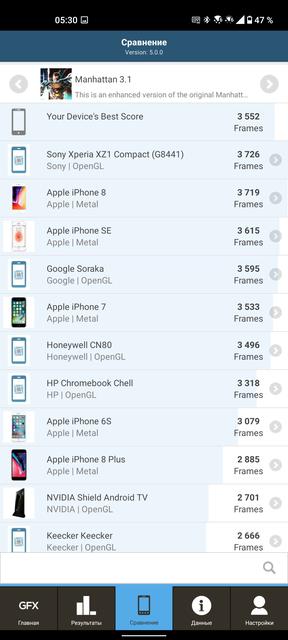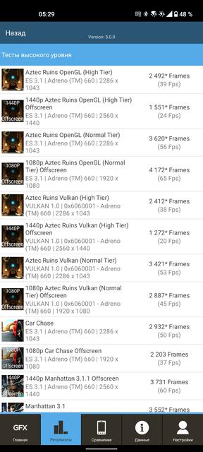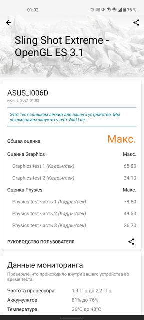 Но с охлаждением у смартфона дела обстоят не очень хорошо. В стресс-тесте в режиме максимальной производительности смартфон очень ощутимо нагревается, процессор троттлит и под конец теста производительность падает до 77%. При обычном использовании нагрев есть, но он наблюдается только при длительных игровых сессиях.