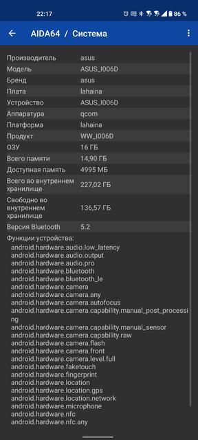 Беспроводные интерфейсы: двухдиапазонный Wi-Fi 802.11 a/b/g/n/ac/6e 2.4 ГГц и 5 ГГц, Bluetooth 5.2 LE (поддерживаются кодеки aptX HD, aptX Adaptive, LDAC), есть NFC для бесконтактной оплаты. Глобальные системы позиционирования GPS, ГЛОНАСС, GALILEO, BDS, QZSS, NavIC. Есть стереозвук с двумя усилителями Cirrus Logic CS35L45. И, стоит сказать, ASUS ZenFone 8 звучит значительно громче, чем можно было ожидать от столь компактного смартфона. При этом, с качеством всё также в полном порядке. В наушники ZenFone 8 выдаёт тоже очень приличный звук, есть поддержка записей вплоть до 384 кГц / 32-бит. Для настройки предусмотрена утилита Мастер Аудио.
