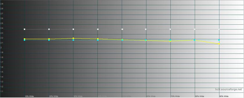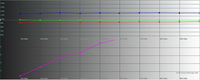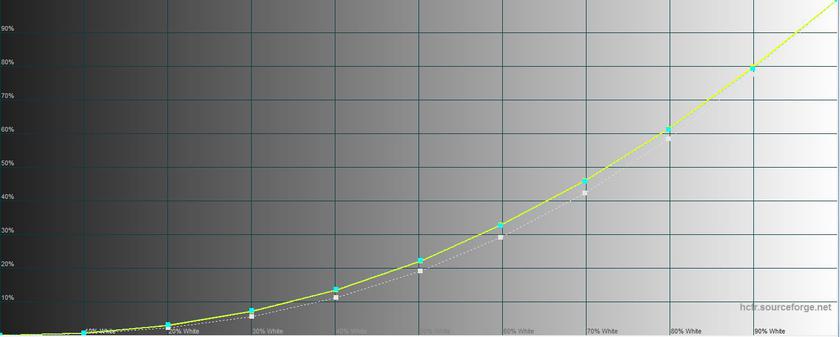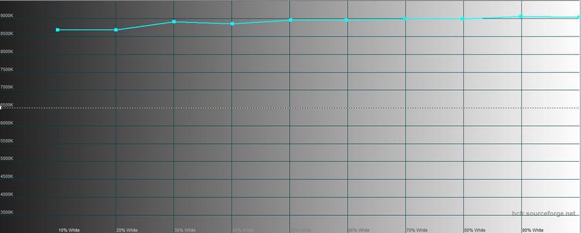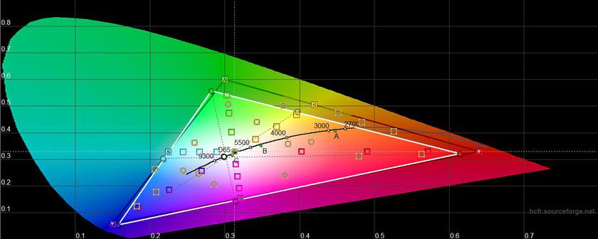 В "Кинематографическом" режиме максимальная яркость незначительно ниже: 429.937 кд/м2. Цветовой охват визуально чуть уже, чем "Естественном" режиме, но при этом отображение цветов более естественное, существенно ближе к эталонным показателям. Есть уклон к холодным оттенкам, но не существенный: