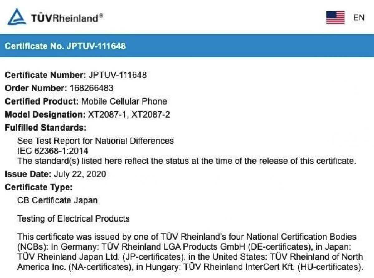 В базе данных сертификационного агентства TUV Rheinland заметили новый смартфон компании Motorola.