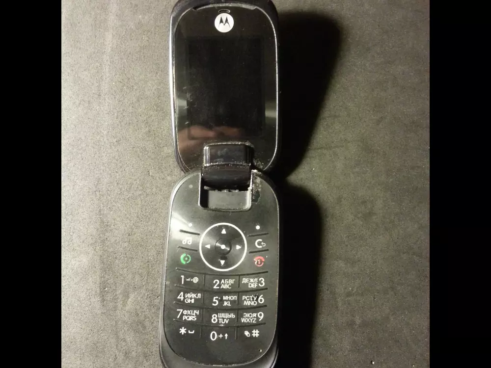 Motorola U9. Древний кирпичефон с сенсорным внешним экраном.