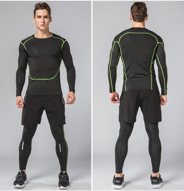 У мужчин популярна так называемая тройка, а именно: реглан, леггинсы и шорты. Такой комплект предназначен практически для всех видов спорта, ну разве что для плаванья не подойдет. Материал: полиэстер и спандекс.
