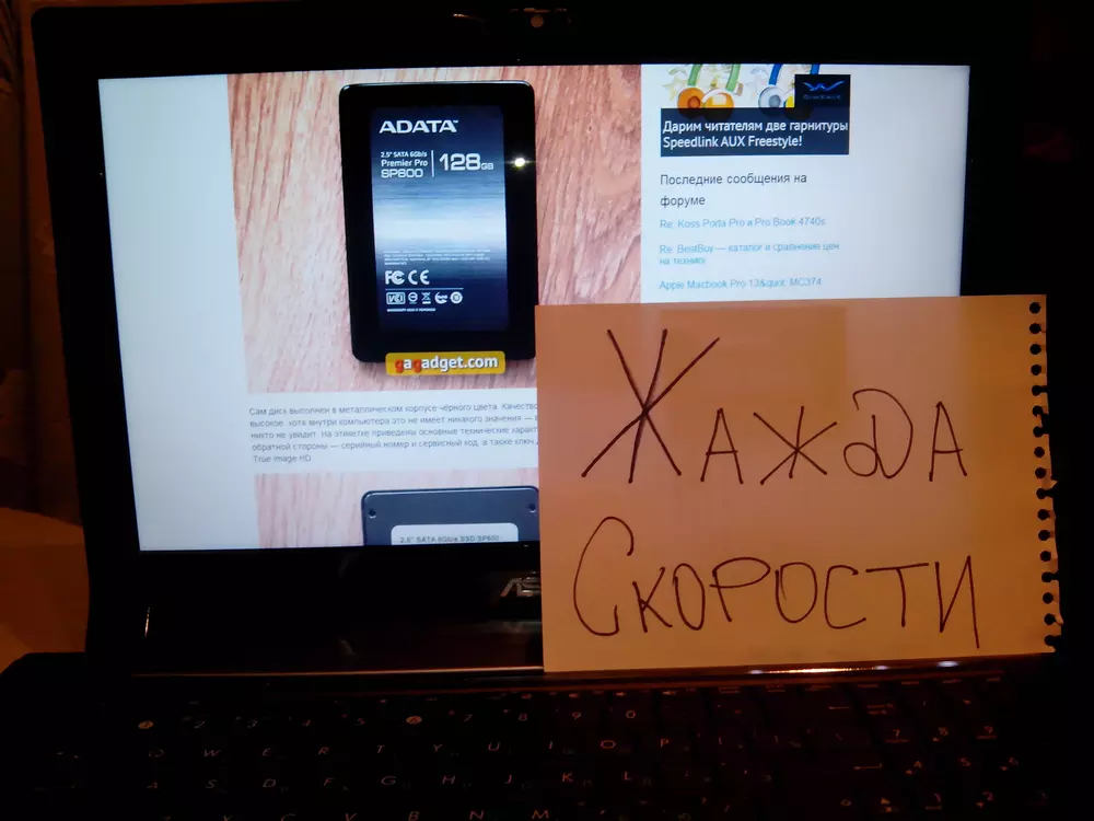 Вы можете выиграть SSD-накопитель ADATA SP600 и тем самым значительно повысить отзывчивость вашего компьютера. Для этого отправьте на конкурс фотографию, изображающую ваш системный блок или ноутбук. В кадре обязательно должна присутствовать надпись «Жажда скорости», выполненная от руки. В конкурсе могут принимать участие только резиденты Украины, не являющиеся сотрудниками или родственниками сотрудников медиа-холдинга «Магнет». Конкурс проводится с 22 по 28 марта 2013 года включительно, итоги будут подведены не позднее 1 апреля.