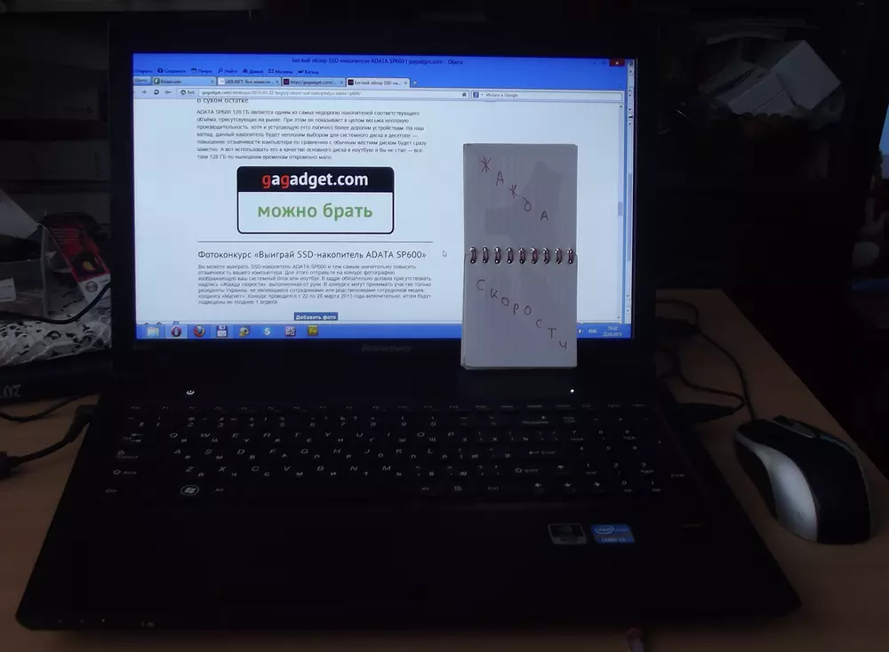 Вы можете выиграть SSD-накопитель ADATA SP600 и тем самым значительно повысить отзывчивость вашего компьютера. Для этого отправьте на конкурс фотографию, изображающую ваш системный блок или ноутбук. В кадре обязательно должна присутствовать надпись «Жажда скорости», выполненная от руки. В конкурсе могут принимать участие только резиденты Украины, не являющиеся сотрудниками или родственниками сотрудников медиа-холдинга «Магнет». Конкурс проводится с 22 по 28 марта 2013 года включительно, итоги будут подведены не позднее 1 апреля.