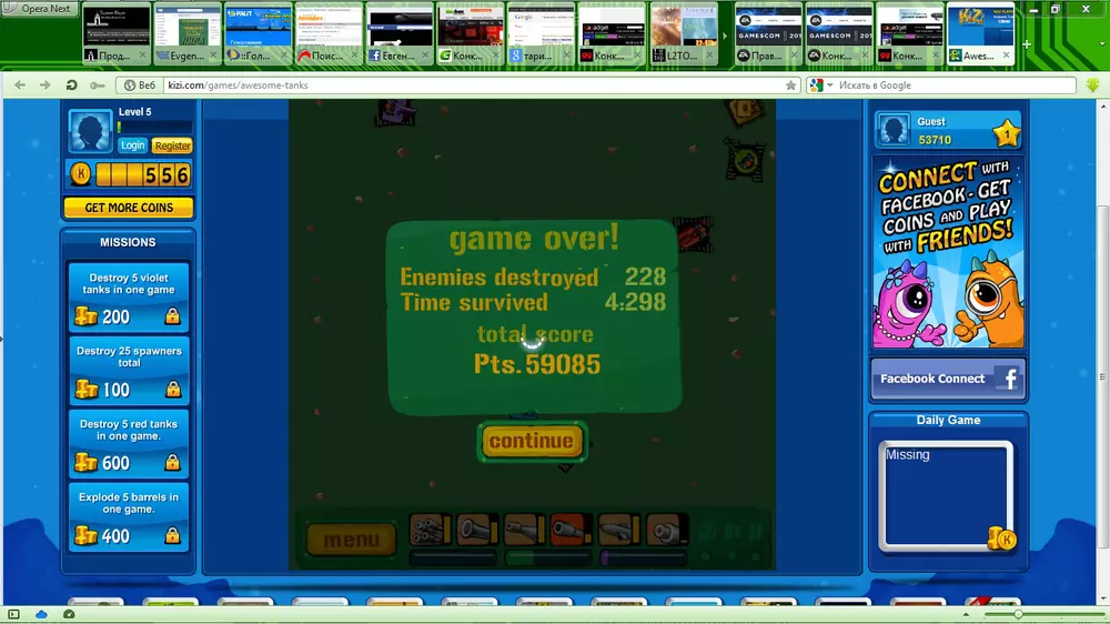 Не видно сколько монет т.к. сервер залагал и не выдавал результат (если этот не годится есть скрин с 53710 очков