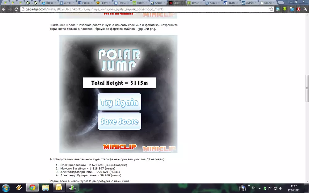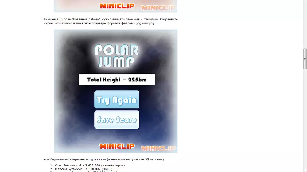 я не претендую на выигрыш в этом состязании...В этой игре есть баг, которым все воспользуются...Если открыть игру в IE 7м или 8м, и нажимать Alt+Spacebar, то мишка останавливается на паузу...