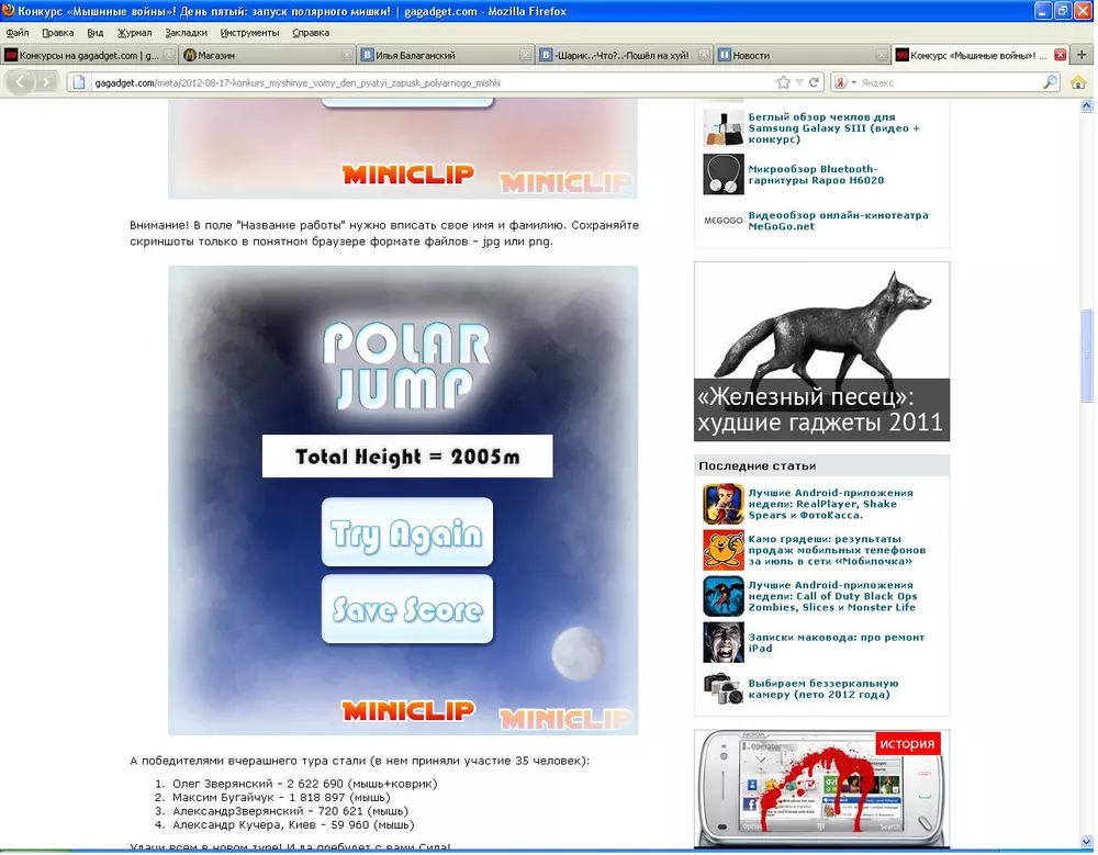 Конкурс «Мышиные войны»! День пятый: запуск полярного мишки!