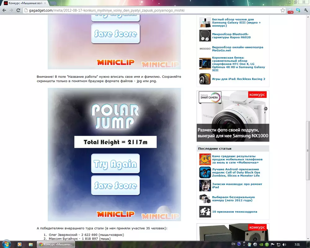 Конкурс «Мышиные войны»! День пятый: запуск полярного мишки!