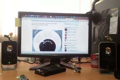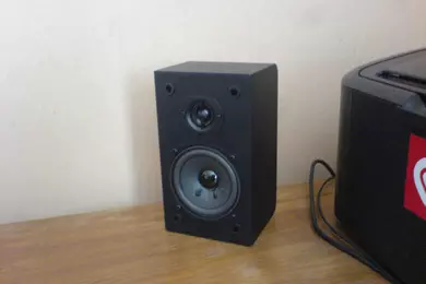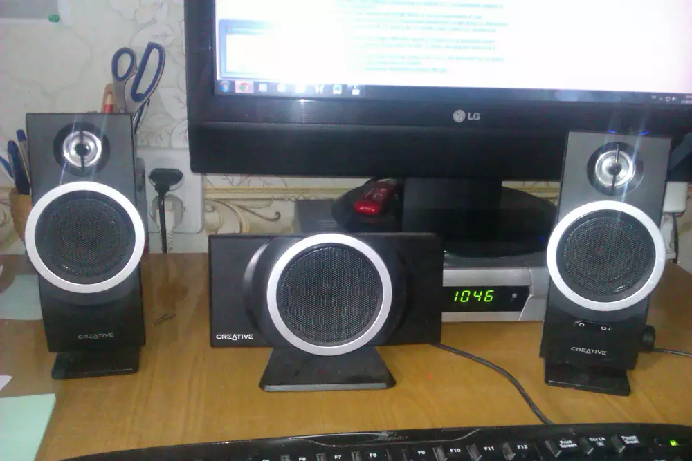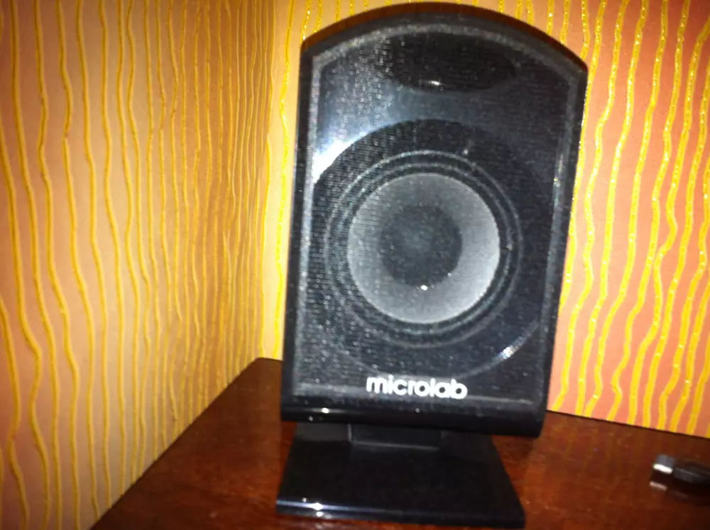 Слушаю музыку через Cambridge Soundworks FPS 1000. На фото один из сателлитов - остальные сателлиты и саб не помещаются одновременно в кадр.