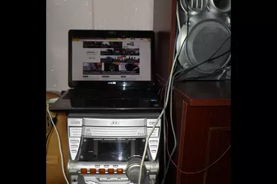 Колонок у меня нет... правда! Поэтому вот вам динамик моего тача, спечиально обвел его, чтобы увидели.