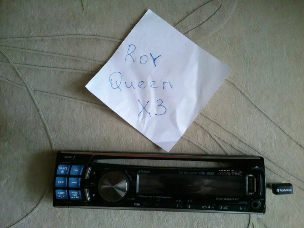 Коллекция музыки в машине. Alpine CDE-123R & Verbatim Store'n'Go 8 Gb. Флешка такая маленькая, что вставил в панель и забыл.