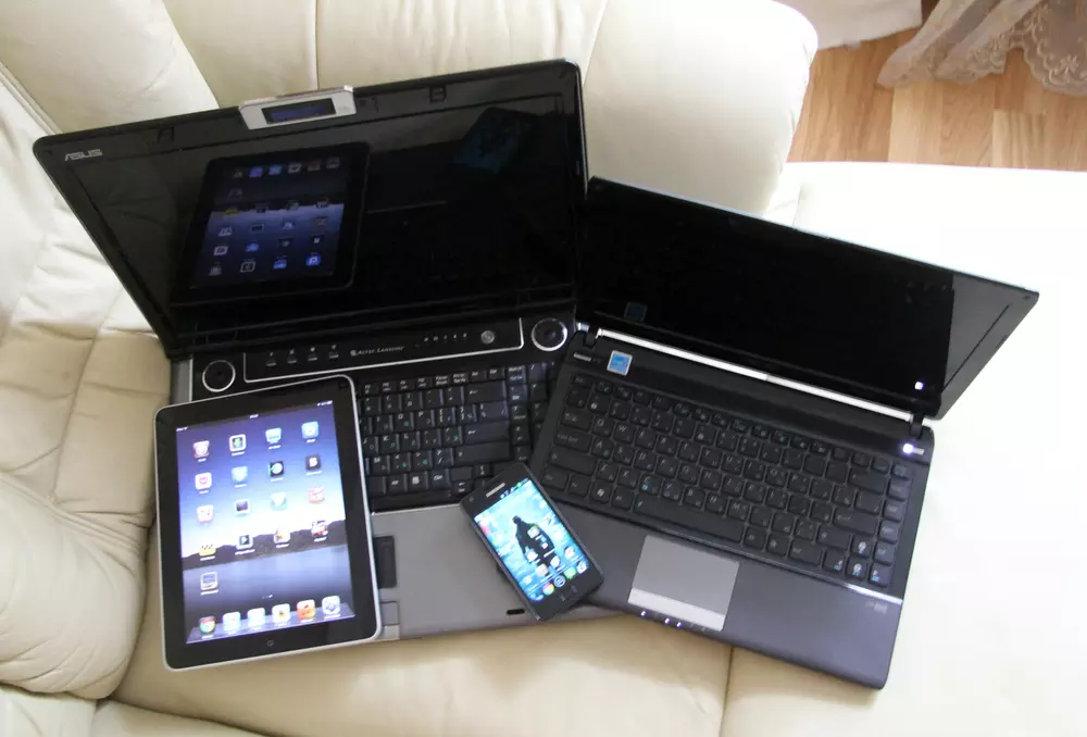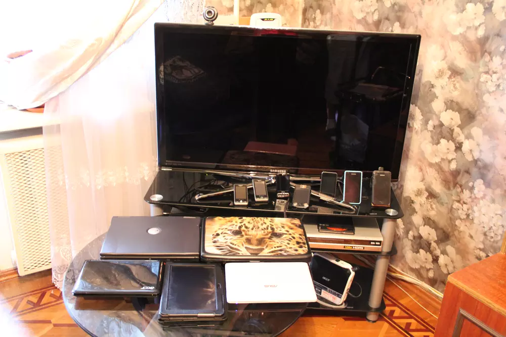 Это мои гаджеты, ну кроме ТВ. Есть еще айфон у жены и Дизайр у ребенка.