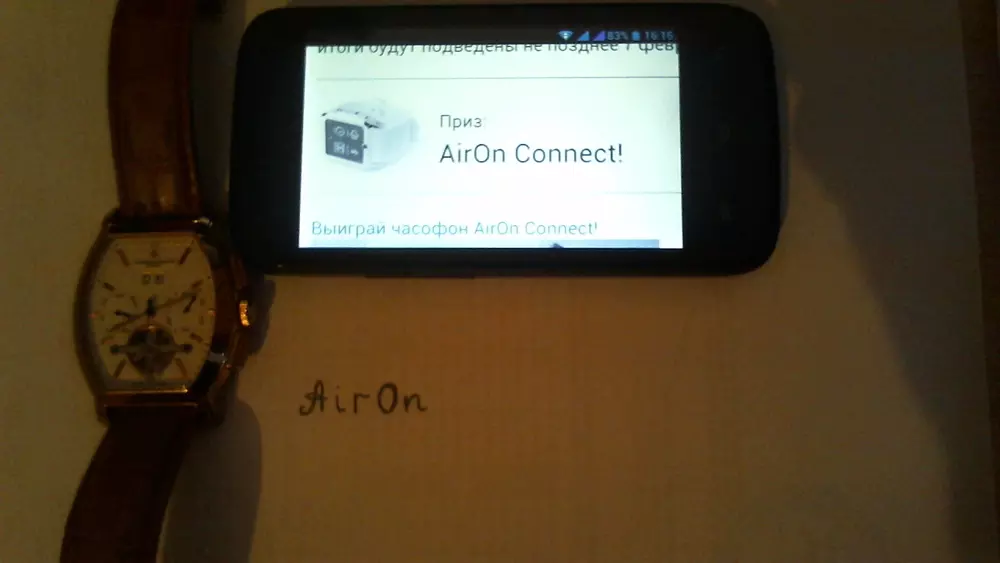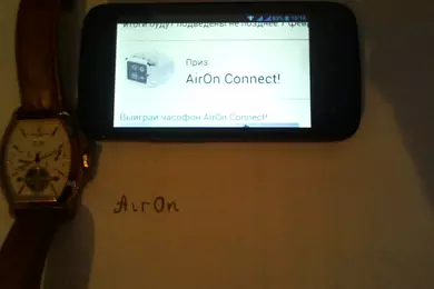 Вы можете выиграть часофон AirOn Connect. Для этого отправьте на конкурс фотографию, на которой должны быть изображены два предмета: часы и смартфон или мобильный телефон. В кадре обязательно должна присутствовать надпись «AirOn», выполненная от руки. Один участник может загрузить не более одной фотографии. Победитель будет выбран случайным образом среди всех участников, представивших соответствующие условиям конкурса работы. В конкурсе могут принимать участие только резиденты Украины, не являющиеся сотрудниками или родственниками сотрудников медиа-холдинга «Магнет». Конкурс проводится с 22 января по 5 февраля 2014 года включительно, итоги будут подведены не позднее 7 февраля.