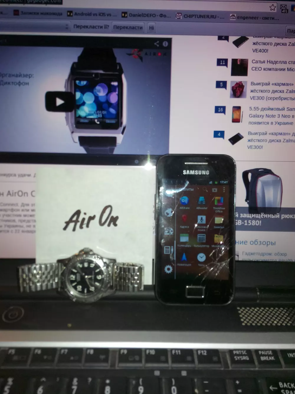 Вы можете выиграть часофон AirOn Connect. Для этого отправьте на конкурс фотографию, на которой должны быть изображены два предмета: часы и смартфон или мобильный телефон. В кадре обязательно должна присутствовать надпись «AirOn», выполненная от руки. Один участник может загрузить не более одной фотографии. Победитель будет выбран случайным образом среди всех участников, представивших соответствующие условиям конкурса работы. В конкурсе могут принимать участие только резиденты Украины, не являющиеся сотрудниками или родственниками сотрудников медиа-холдинга «Магнет». Конкурс проводится с 22 января по 5 февраля 2014 года включительно, итоги будут подведены не позднее 7 февраля.