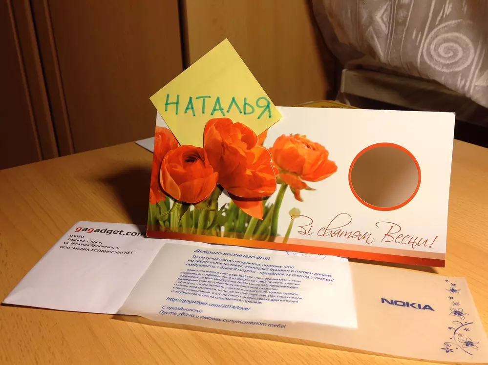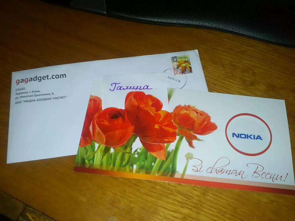 Спасибо за открытку. Мне и от открытки было приятно, а от телефона я, наверное, с ума от счастья сойду :-)
