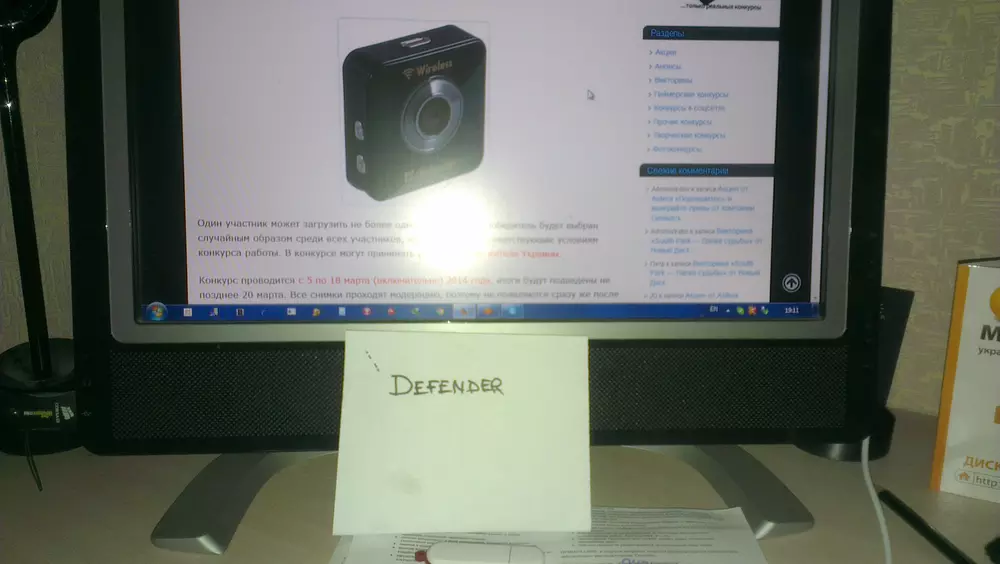 Вы можете выиграть эту беспроводную камеру Defender Multicam WF-10HD. Для этого отправьте на конкурс фотографию, на которой должны быть изображены сценарии ее использования: ваша комната или вид из автомобиля. В кадре обязательно должна присутствовать хорошо различимая надпись «Defender», сделанная до съемки, а не в графическом редакторе. Один участник может загрузить не более одной фотографии. Победитель будет выбран случайным образом среди всех участников, представивших соответствующие условиям конкурса работы. В конкурсе могут принимать участие только жители Украины, не являющиеся сотрудниками или родственниками сотрудников медиа-холдинга «Магнет». Конкурс проводится с 5 по 18 марта (включительно) 2014 года, итоги будут подведены не позднее 20 марта. Все снимки проходят модерацию, поэтому не появляются сразу же после отправки. Как правило, они обрабатываются в течение рабочего дня. Редакция оставляет за собой право отклонить поданный на конкурс снимок, если он не отвечает нормам права и морали (обещаем не злоупотреблять этим пунктом). Отдельно хотим ответить, что это не конкурс "нарисуй логотип покреативнее", поэтому творческие изыски в этом направлении не дадут никаких преимуществ. Единственная цель надписи — защитить участников конкурса от неспортивного поведения. Нам важно понимать, что снимок сделан специально для этого конкурса, а не взят где-либо в интернете. Удачи всем участникам и да пребудет с вами Сила!