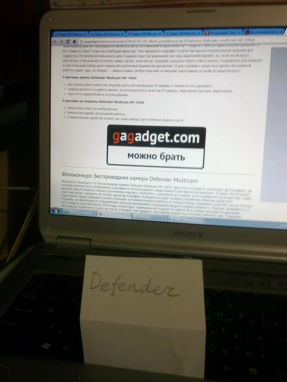 Вы можете выиграть эту беспроводную камеру Defender Multicam WF-10HD. Для этого отправьте на конкурс фотографию, на которой должны быть изображены сценарии ее использования: ваша комната или вид из автомобиля. В кадре обязательно должна присутствовать хорошо различимая надпись «Defender», сделанная до съемки, а не в графическом редакторе. Один участник может загрузить не более одной фотографии. Победитель будет выбран случайным образом среди всех участников, представивших соответствующие условиям конкурса работы. В конкурсе могут принимать участие только жители Украины, не являющиеся сотрудниками или родственниками сотрудников медиа-холдинга «Магнет». Конкурс проводится с 5 по 18 марта (включительно) 2014 года, итоги будут подведены не позднее 20 марта. Все снимки проходят модерацию, поэтому не появляются сразу же после отправки. Как правило, они обрабатываются в течение рабочего дня. Редакция оставляет за собой право отклонить поданный на конкурс снимок, если он не отвечает нормам права и морали (обещаем не злоупотреблять этим пунктом). Отдельно хотим ответить, что это не конкурс "нарисуй логотип покреативнее", поэтому творческие изыски в этом направлении не дадут никаких преимуществ. Единственная цель надписи — защитить участников конкурса от неспортивного поведения. Нам важно понимать, что снимок сделан специально для этого конкурса, а не взят где-либо в интернете. Удачи всем участникам и да пребудет с вами Сила!