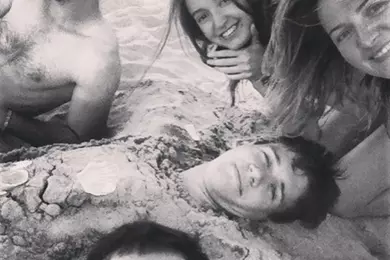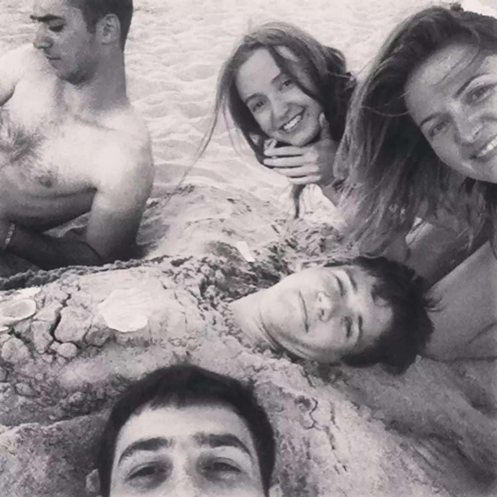 Зарыли парня в песок, и все конечно захотели с ним селфи! Что бы его долго не мучать, в кадр влезли все, ну а у него влезли только брови)))