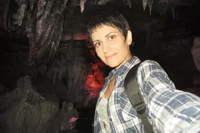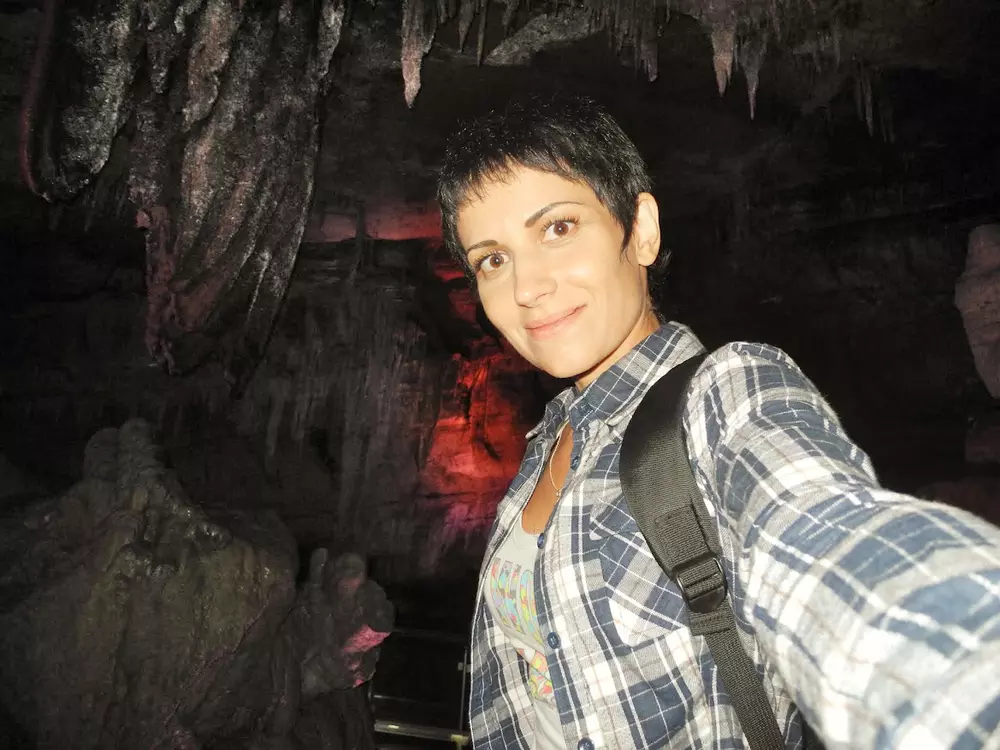 Это в пещере Кумистави в Грузии на глубине около 80 метров. Я никогда ранее не спускалась в пещеры, по этому для меня это был очень яркий момент в жизни! Природная пещера с подземной рекой, подземным озером и подземным водопадом - невероятно красиво!