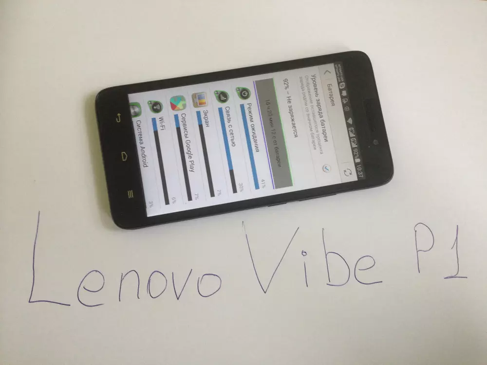 Уважаемые читатели! У вас есть возможность выиграть смартфон Lenovo Vibe P1, если вы примете участие в нашем конкурсе и сделаете снимок своего смартфона в режиме демонстрации графика разрядки аккумулятора вместе с надписью «Lenovo VIBE P1», сделанной любым удобным способом, кроме графического редактора — примеры таких снимков ниже.