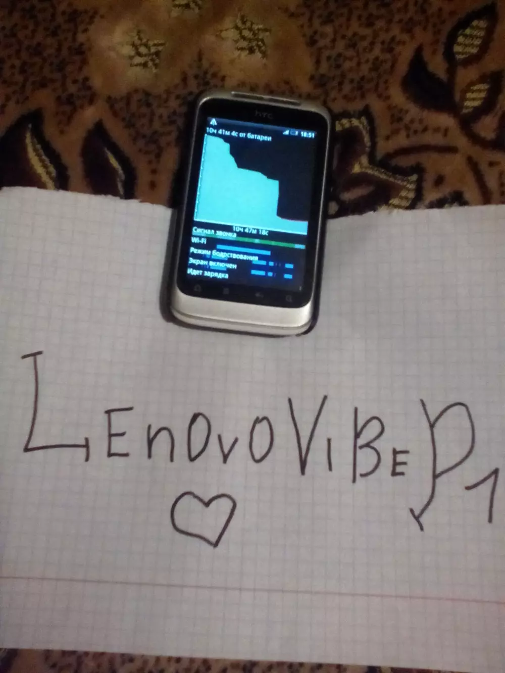 Уважаемые читатели! У вас есть возможность выиграть смартфон Lenovo Vibe P1, если вы примете участие в нашем конкурсе и сделаете снимок своего смартфона в режиме демонстрации графика разрядки аккумулятора вместе с надписью «Lenovo VIBE P1», сделанной любым удобным способом, кроме графического редактора — примеры таких снимков ниже.